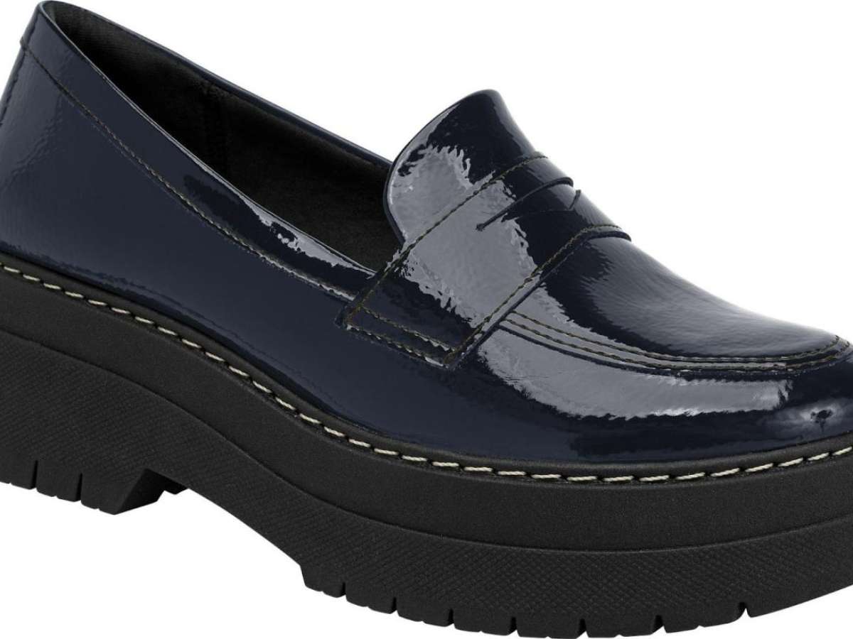 Mocassim Colegial Navy: Estética preppy com sola tratorada e verniz (R$ 289,90).