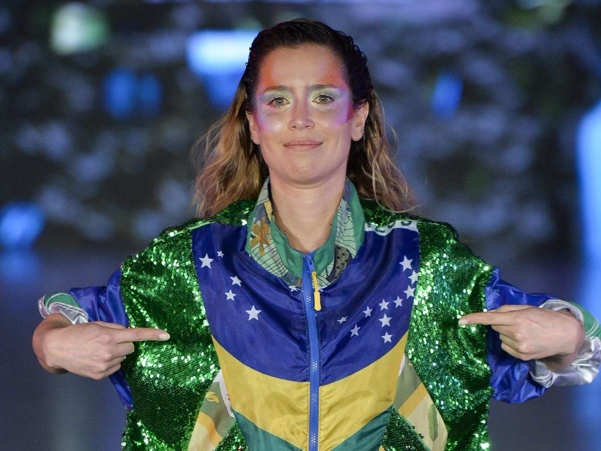 Criaturas submarinas emergiram na passarela da marca Guma Joana em um manifesto ecológico em favor dos oceanos. O desfile da coleção Corpo Azul começou com vestidos pretos, usados por nomes como a bailarina trans Marcia Dailyn, do Theatro Municipal, e a maquiadora Maxi Weber, em silhueta de sereia.