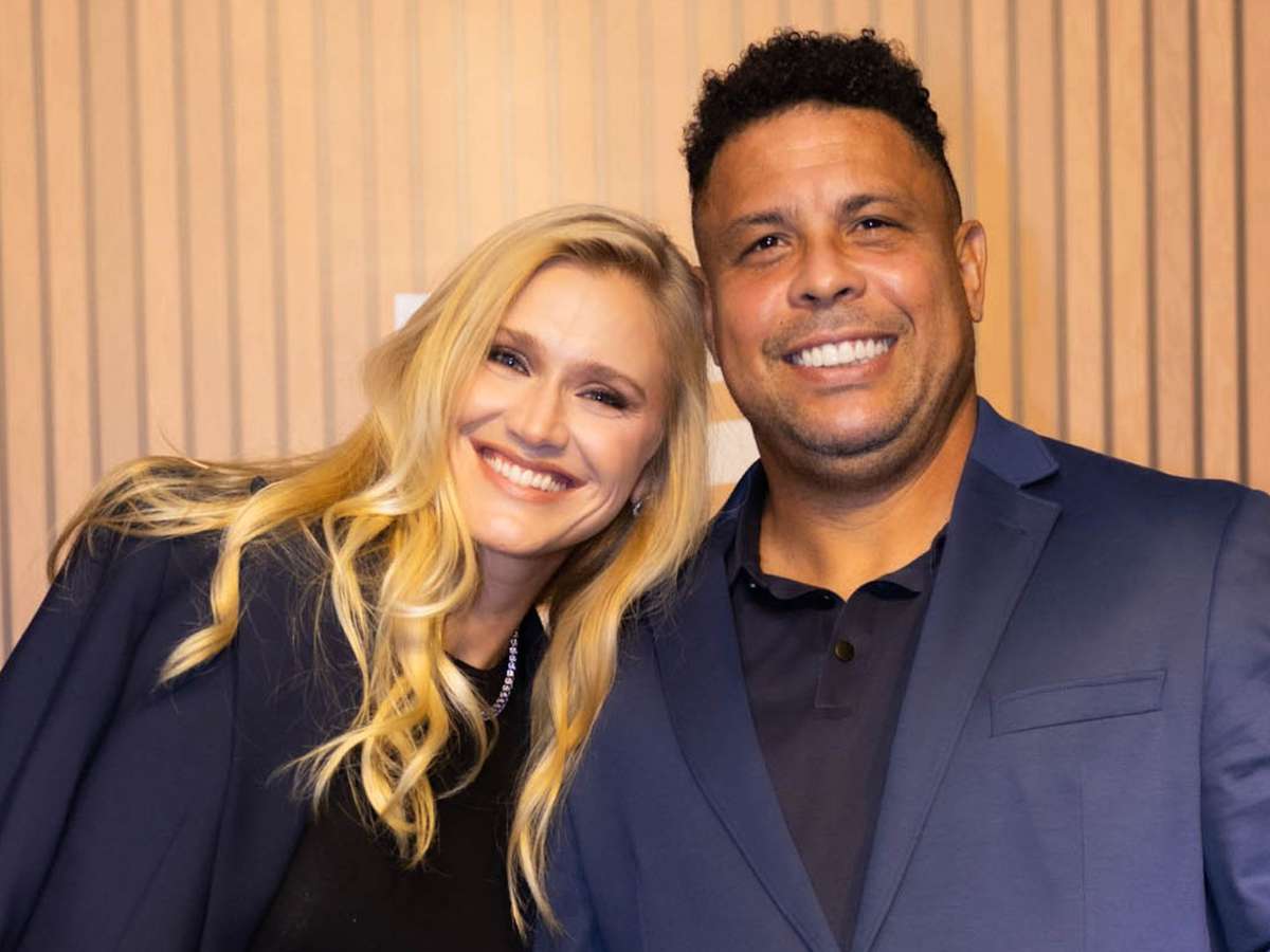 Ela elegeu um vestido preto básico, no comprimento mídi, e completou o look com um blazer azul-marinho. A mesma cartela de cores foi usada também por Ronaldo. Ou seja, o casal escolheu produções "combinandinho".