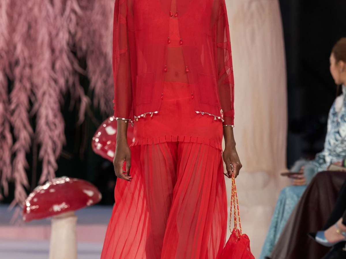 Na Chanel, com elenco de modelos de todas as idades, além de várias brasileiras, Matthieu Blazy colocou ainda cogumelos gigantes e salgueiros (chorões) rosa, no icônico Grand Palais. A noiva, no encerramento, veio com um tailleur totalmente adornao com maxipaetes em tons de madrepérola, em formato amplo. A modelo, sorrindo, deu até pivô na passarela. Veja mais looks desfilados por algumas brasileiras para a alta-costura da Chanel.