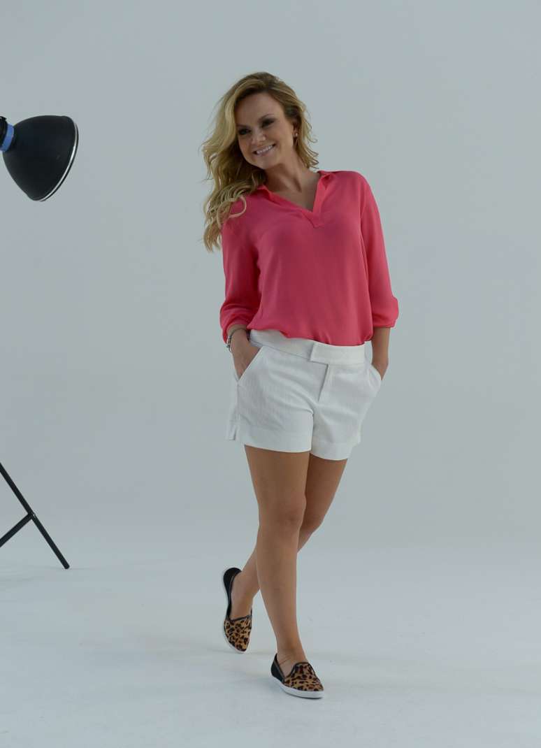 Apresentadora mostrou boa forma com peças curtas e decotadas em ensaio fotográfico