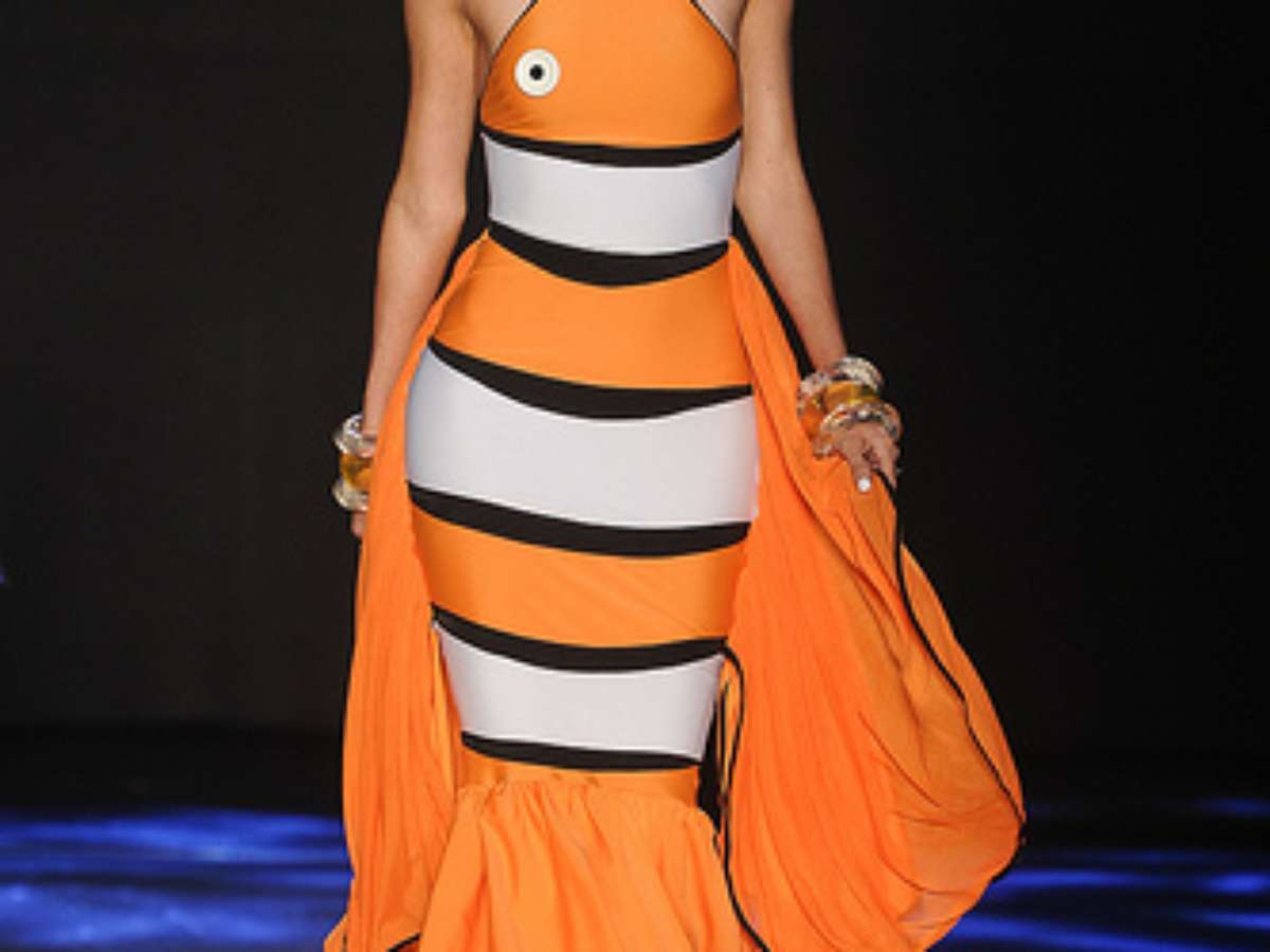 Peixinho de Procurando Nemo se transforma em vestido na proposta de Fernando Cozenday