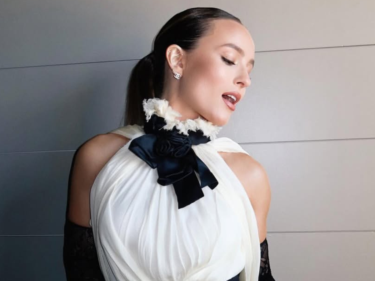 "Noite de boas-vindas em LA com HBO Max", escreveu na legenda da foto. A atriz optou pela elegância do pretinho nada básico, da Alessandra Rich. Usou saia de renda com corset de veludo incrementado com botões brilhantes. Para completar, blazer sobre os ombros, meia-calça e escarpim.