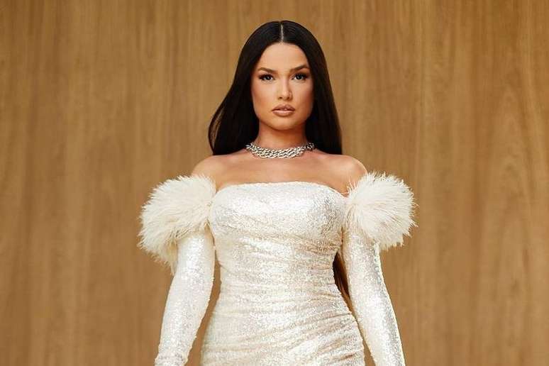 A ex-BBB Juliette usou um vestido branco com brilho e plumas da Colcci. O look foi feito especialmente para ela, que concorre a "Personalidade Digital". E a gente sabe bem que 2021 foi o ano dela no mundo virtual e no mundo real, não é? O modelo tomara que caia com com mangas compridas tem virado queridinho de muitas famosas. E essa fenda poderosa, hein? Não tem pra ninguém.