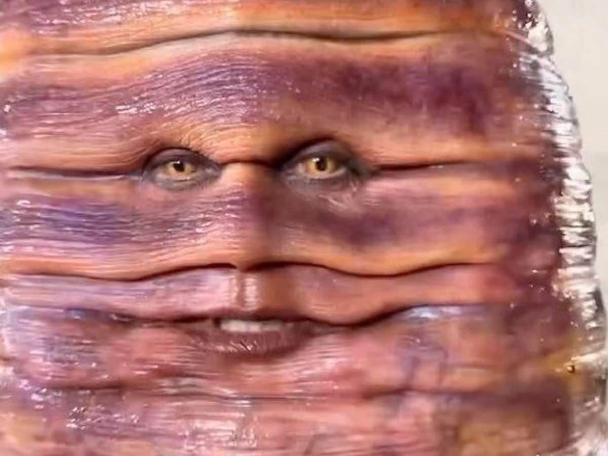 Irreconhecível, a top model entrou numa estrutura em formato de minhoca e profissionais da empresa Prosthetic Renaissance, responsável pela caracterização de vários personagens de filmes, pintaram com jatos de spray a fantasia para se parecer ao animal invertebrado. "Obrigado a toda a equipa @prorenfx por mais um ano inacreditável. Vocês são os melhores e eu adoro trabalhar com vocês", escreveu no Instagram.