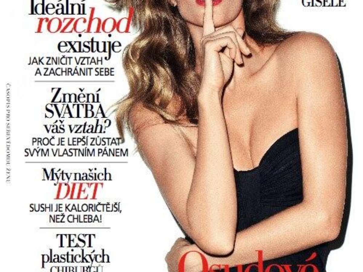A top brasileira Gisele Bündchen é capa da edição de abril da revista Harper's Bazaar, da República Checa. Em cima da foto da modelo, estão os seguintes dizeres: "a fatídica data; branco sedutor; jeans sexy; diamantes de luxo".