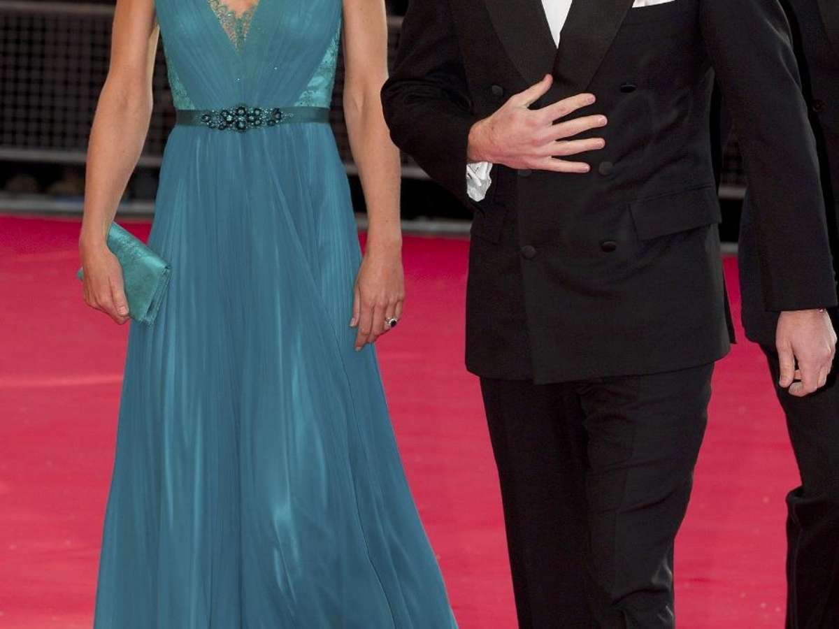 Segundo o Daily Mail, o guarda-roupa para ocasiões públicas usado por Catherine Middleton custou nada menos que £ 35 mil (pouco mais de R$ 113 mil). Confira os preços de alguns vestidos da duquesa, de acordo com o jornal britânico.: nesta foto, Kate com um modelo de Jenny Packham verde, com detalhes em renda, que dizem ter custado £2.050 (cerca de 6,6 mil reais)