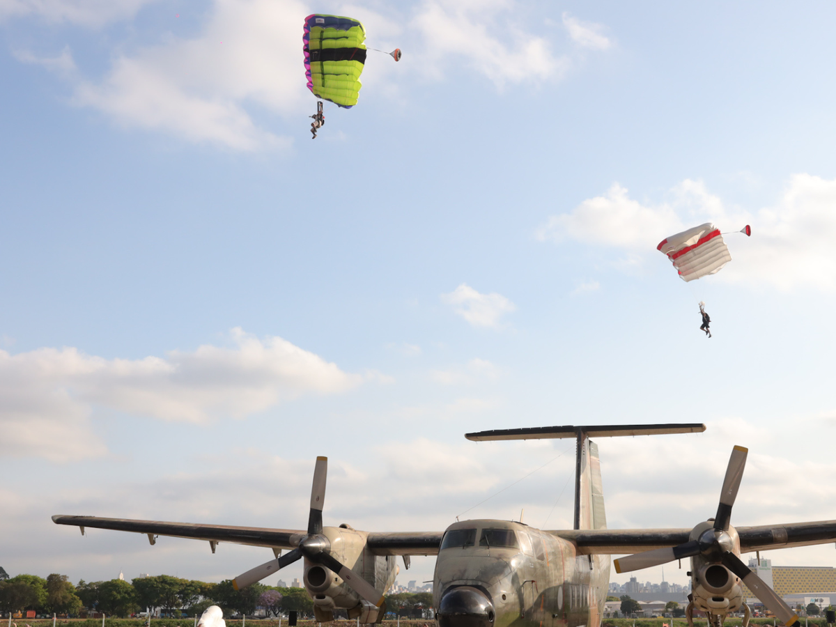 O desfile da Forca começou com show de paraquedismo, no Campo de Marte, região Norte de São Paulo. Depois, a apresentação com 50 looks, tendo Alinne Moraes e Vitória Strada como modelos.