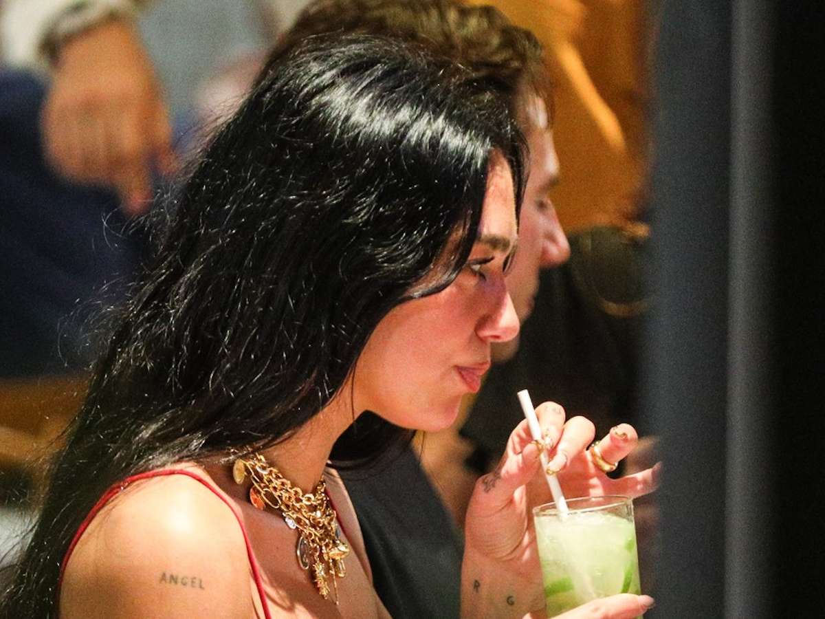 Dua Lipa toma caipirinha no Rio com look anos 2000 de R$ 2,8 mil