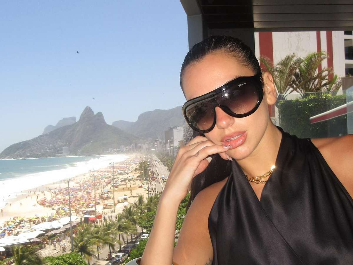 Na despedida do Brasil, depois de uma estadia na mansão de Angélica e Luciano Huck no Rio de Janeiro, Dua Lipa postou uma série de fotos dos últimos dias na Cidade Maravilhosa, em que aparece com vestido preto, vestido branco, chinelo de dedo e biquíni com brilho.