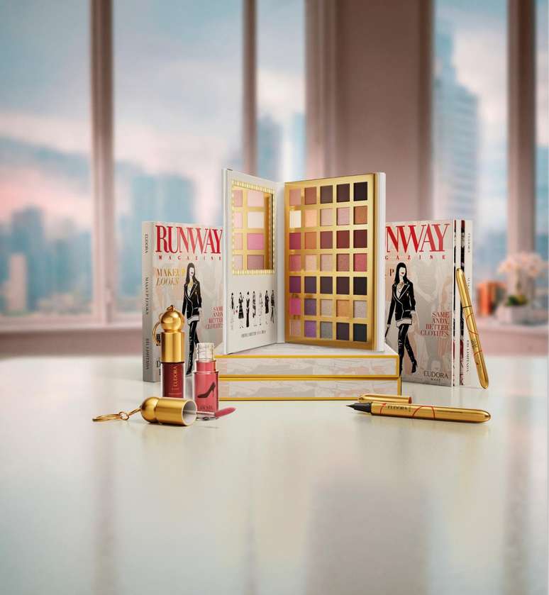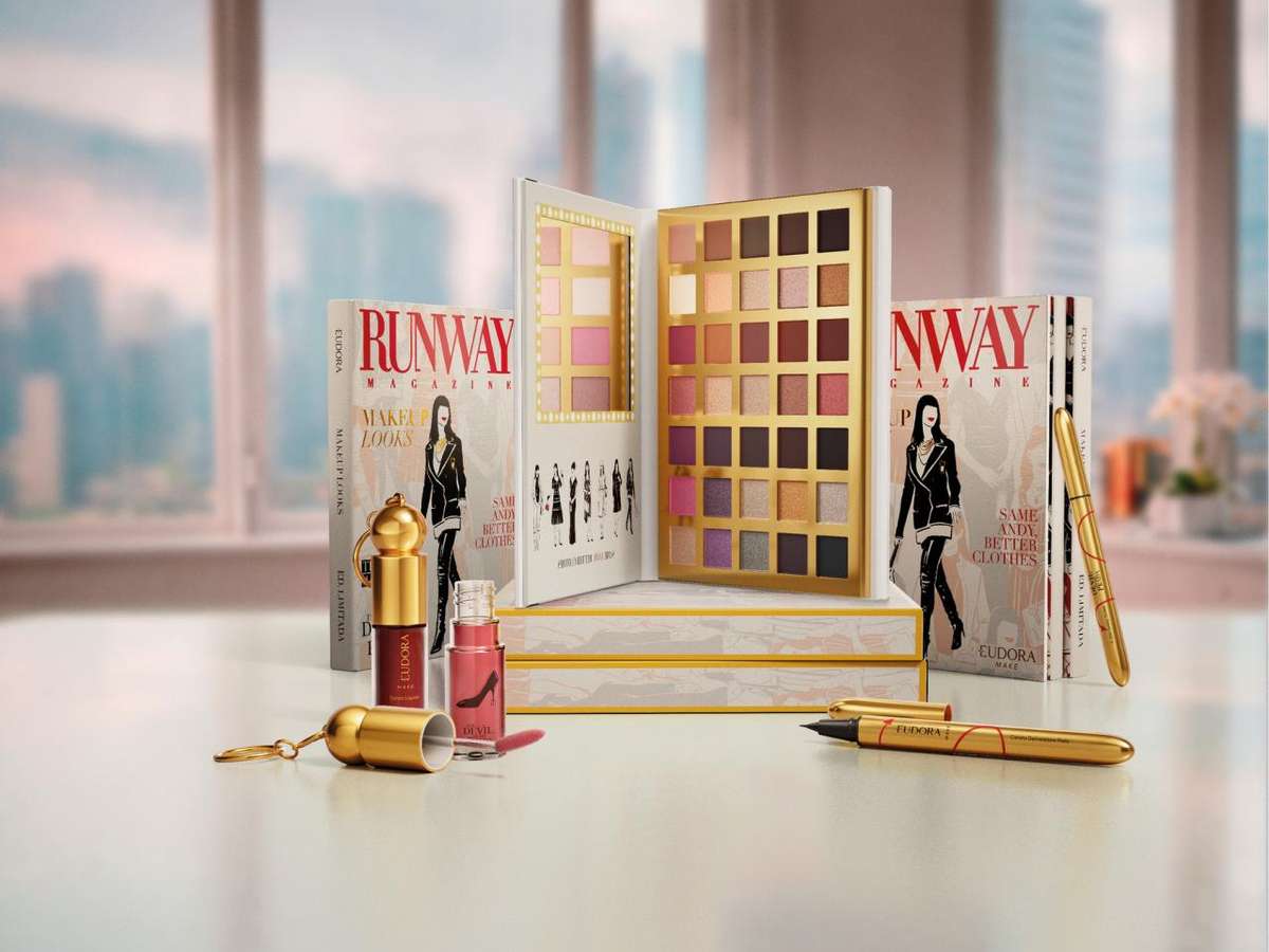 A Palette Runway Magazine reúne 35 sombras em acabamentos acetinado, matte, superbrilho e cremoso, permitindo criar desde produções clássicas até looks mais ousados. Além disso, o Batom Líquido Fashion Icon chega em quatro tonalidades: vermelho, vinho, marrom e nude, com acabamento cremoso e embalagem que se transforma em charm para usar na bolsa.
