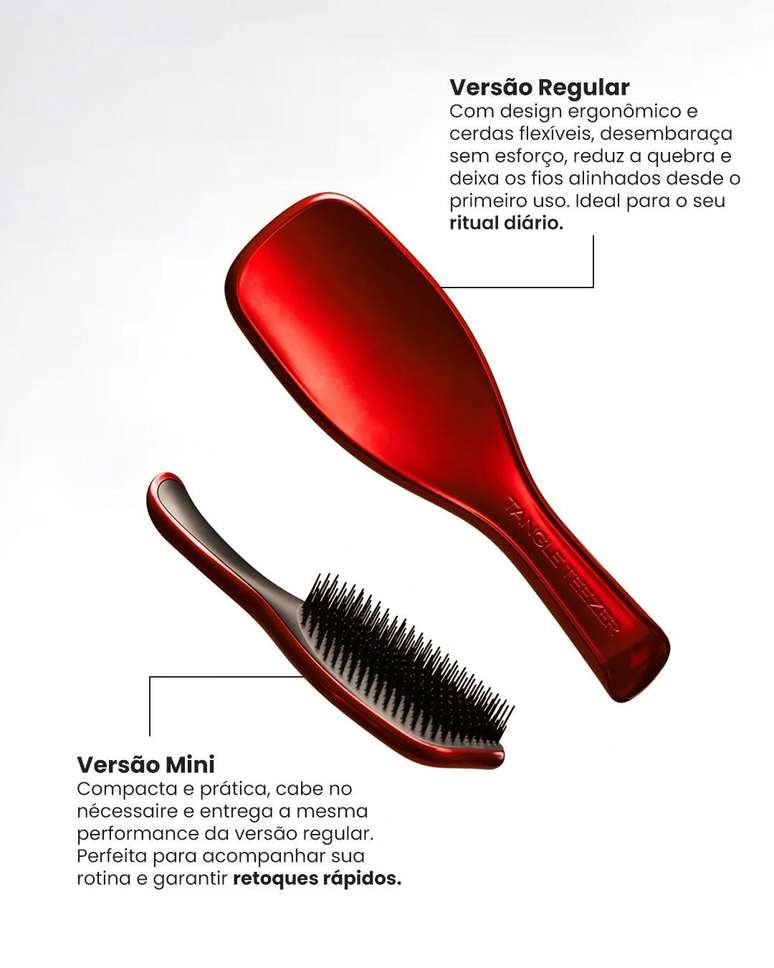 Além do visual, os produtos mantêm a tecnologia patenteada de cerdas flexíveis em dois níveis que desembaraça sem esforço, reduz a quebra e proporciona brilho e maciez. A versão Mini é ideal para levar na bolsa. Os produtos estão disponíveis desde 15 de abril, por R$ 234 na versão regular e R$ 219 na Mini.