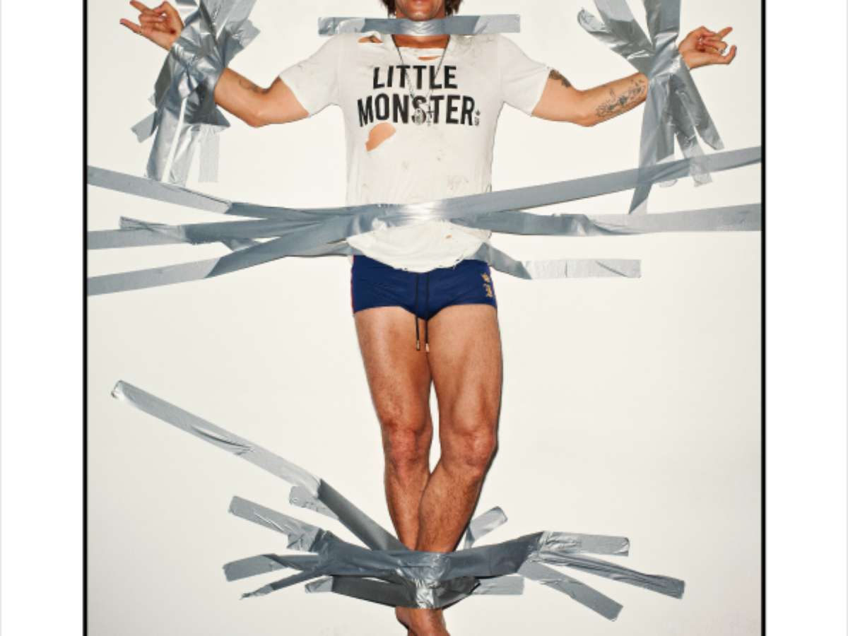 Em uma das fotos, Ward está crucificado na parede, vestindo sunga e camiseta com a menção Little Monster, bordão de Gaga