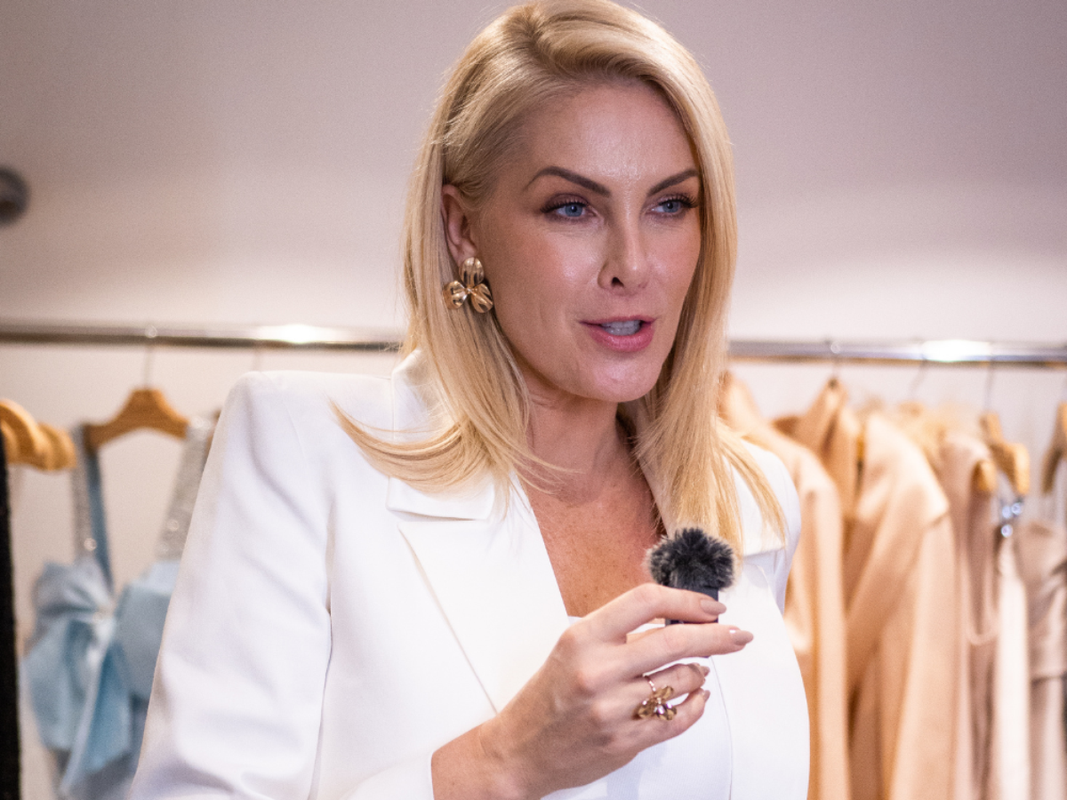 No evento de Zerbinato, Ana apostou em um terno da nova coleção, com calça de bolso faca e blazer alongado. O destaque ficou para os botões aplicados nas mangas de forma não convencional, detalhe que foge do padrão e reforça a proposta da coleção. A apresentadora também usou um xale grande por cima, da coleção.