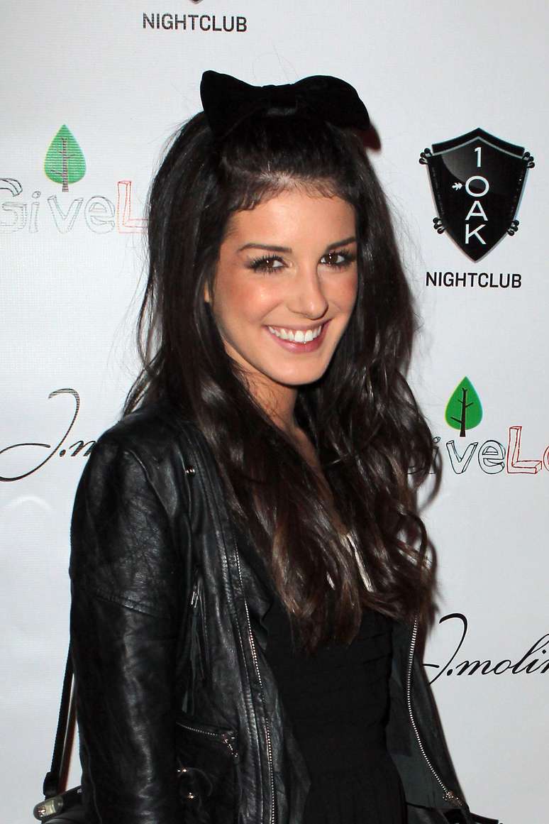 Shenae Grimes prende a franja com laço grande num visual que lembra o eternizado pela personagem Pedrita, dos Flintstones