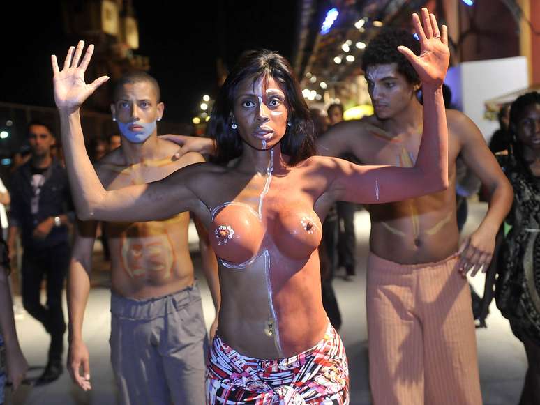 Modelos passearam pelos corredores do Píer com o peito nu para cobrarem a participação de mais negros nos eventos da moda nacional