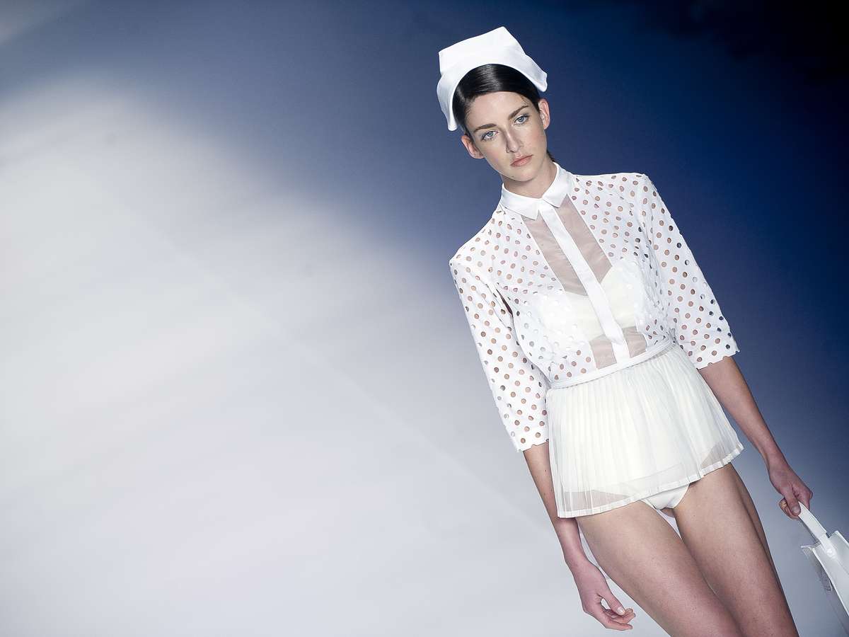 A pop art do artista Roy Lichtenstein foi o mote para a 2nd Floor abrir os desfiles oficiais da 23ª edição do Fashion Rio com suas "enfermeiras" vestindo transparências e sobreposições. Se pensou em fetichismo puro, enganou-se. A grife desenhada por um grupo de estilistas, tendo à frente Thiago Marcon, fez com que uma das figuras mais emblemáticas da obra de Lichtenstein viesse com uma roupagem moderna e jovial. Os uniformes e aventais hospitalares foram traduzidos em formas inspiradas nos anos 60 e uma pegada esportivas, com direito a blusões e calças com punhos. Por baixo, elementos do beachwear, como hot pants.