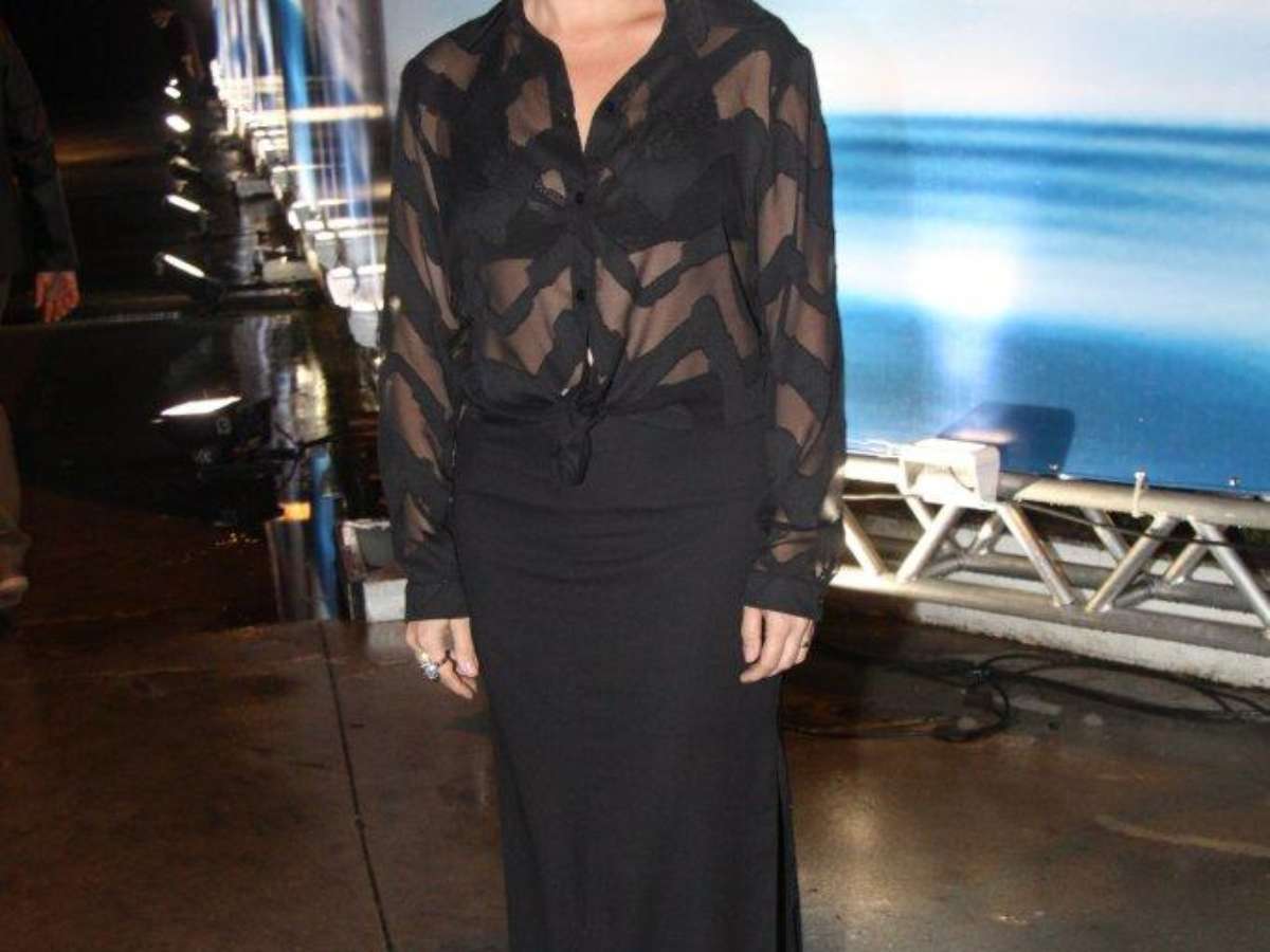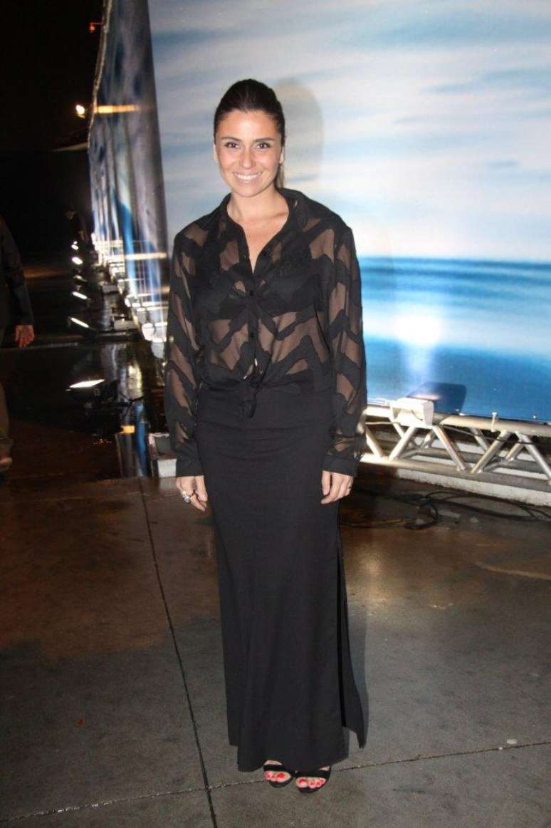 Giovanna Antonelli foi clicada com camisa transparente; a atriz marcou presença no desfile da Iódice