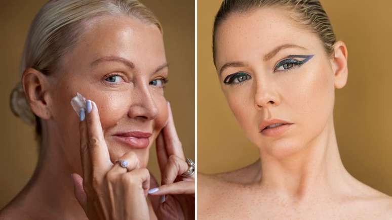 Para os lábios, gloss com brilho espelhado, batons tint e vermelhos vibrantes dominam o verão. A tendência é equilibrar cor e leveza, priorizando fórmulas confortáveis que resistem ao clima quente sem derreter.