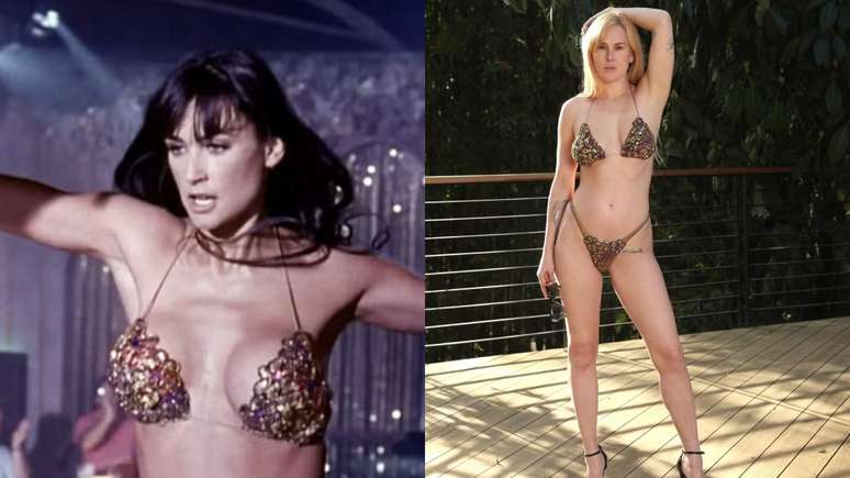 Rumer Willis, a filha da renomada atriz Demi Moore e do ator Bruce Willis, recentemente protagonizou uma sessão de fotos que remete a um dos looks mais emblemáticos de sua mãe, utilizado no filme "Striptease", lançado em 1996. A escolha do biquíni, que ficou marcado na cultura pop, traz à tona a ousadia e o estilo de Demi na época.