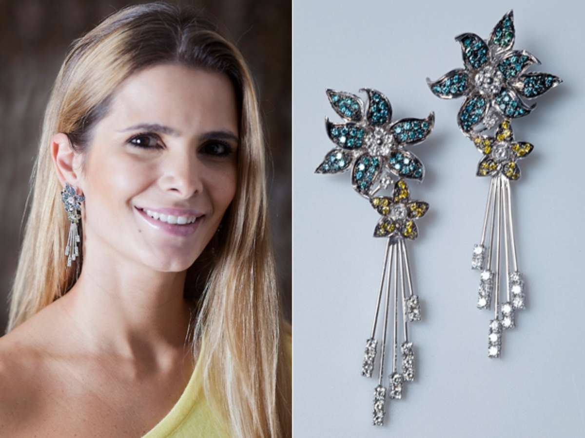 “Todo dia 16, o Luciano me dá uma orquídea, para lembrar o nosso casamento, que foi em 16 de outubro de 2003. Por isso, quis fazer uma joia lembrando essa flor”, contou. O brinco é feito com diamantes azuis e canário (amarelado). “O Luciano não me deixou vendê-lo para outra pessoa e acabou me dando de presente no Dia dos Namorados. Não fiz desconto, apenas parcelei o valor”, afirmou, brincando. A joia está avaliada em R$ 14 mil.