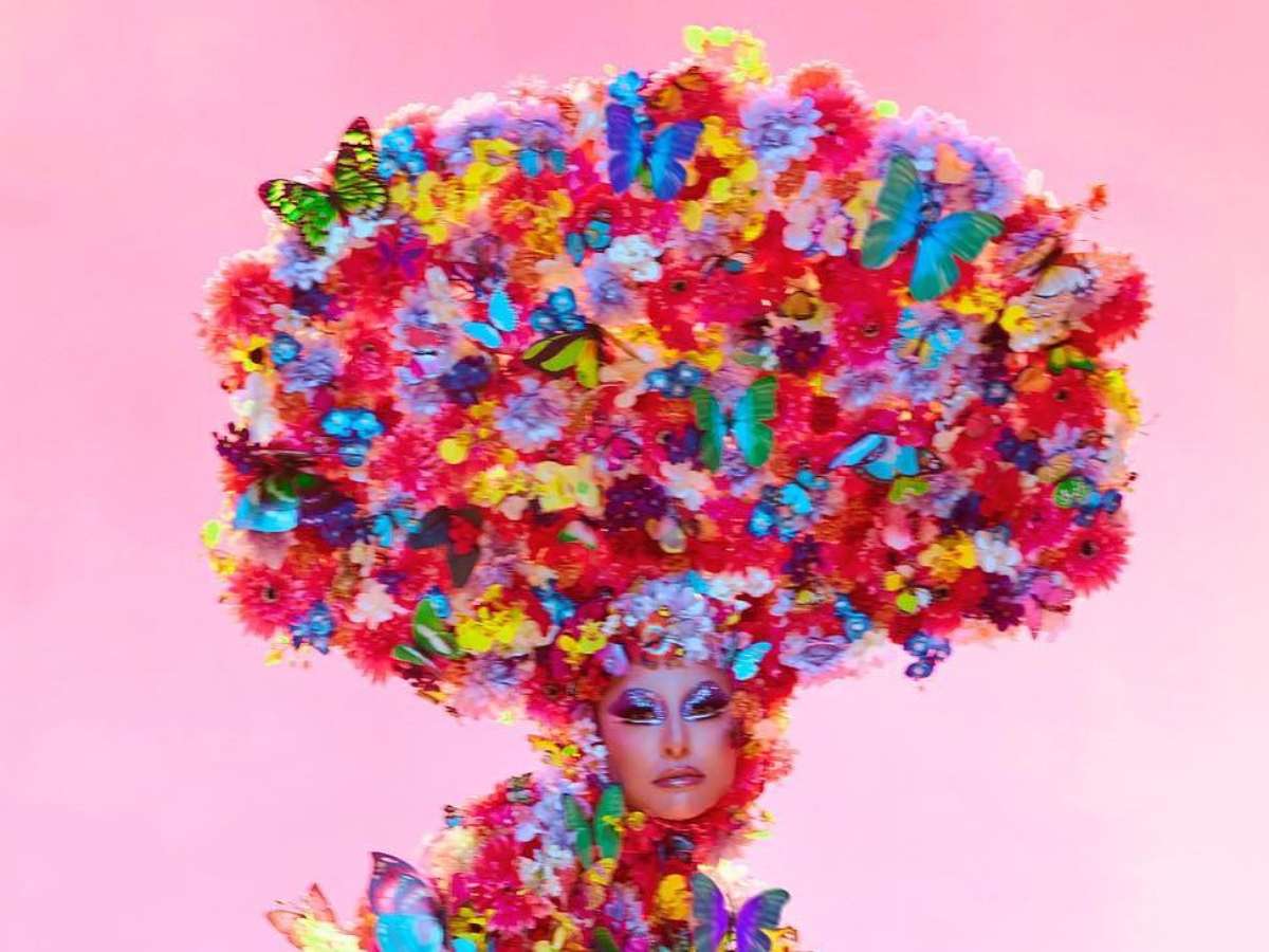 A drag queen Bianca Dellafancy também apostou em look florido feito por Alessandra Cacciatori, com styling de Thiago Setra.