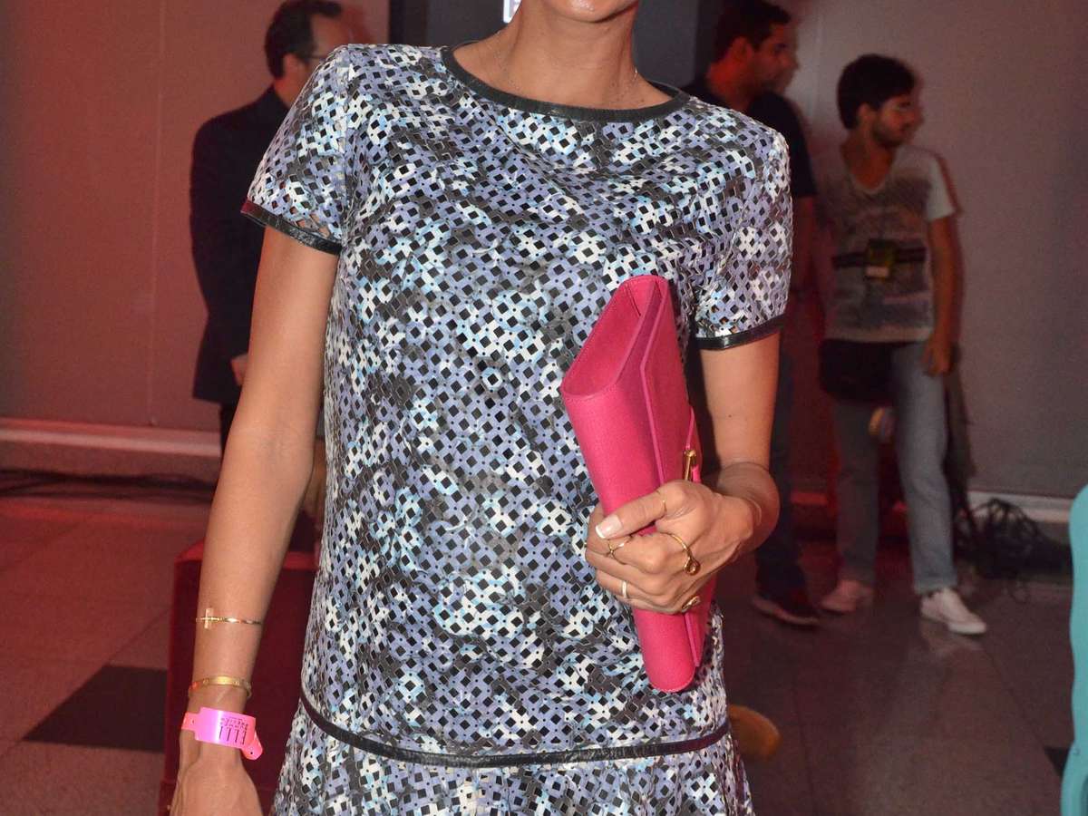 O evento marcou o lançamento da Winter Collection 2013. Para a festa, a estrela vestiu saia lápis com estampa de oncinha e top com aplicações.