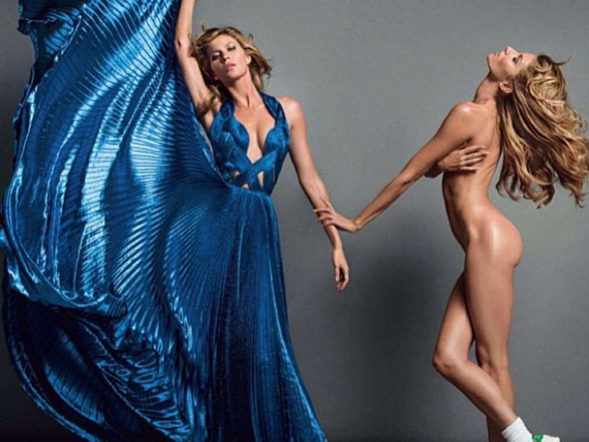 Gisele Bündchen aparece 'em dobro' e nua em capa de revista
