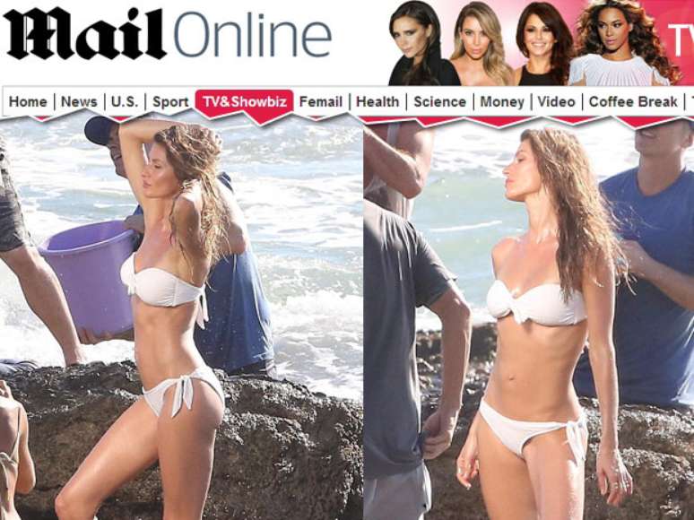 Mãe de dois filhos, a übber model brasileira posou com o oceano como pano de fundo e, em alguns cliques, ela aprece usando um biquíni branco tomara-que-caia. Uma equipe trabalhava no mar, despejando baldes d’água, para garantir o efeito das ondas batendo nas rochas.Gisele também recebeu spray ao longo do corpo que garantiu um bronzeado artificial, provando que até uma top model pode ficar um pouco mais bonita.