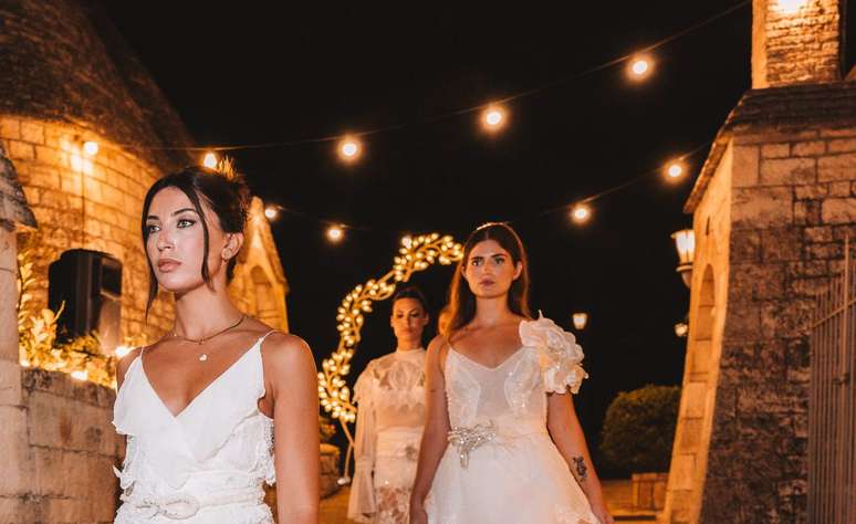 Grife brasileira leva desfile de noivas boho à Puglia, na Itália