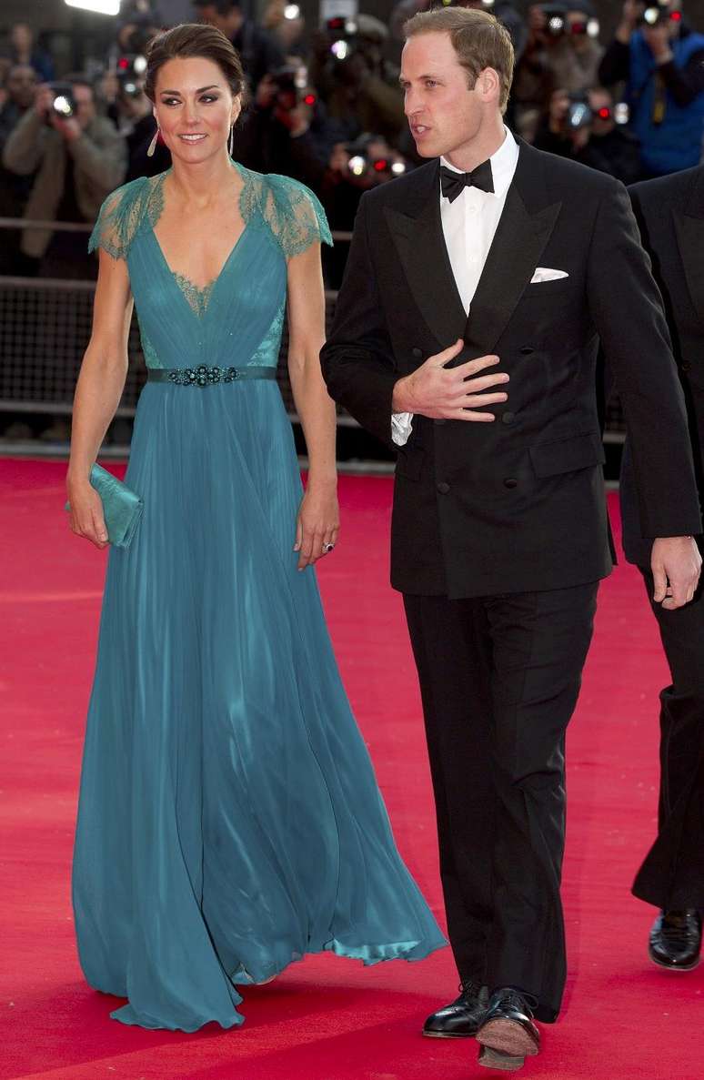 Segundo o Daily Mail, o guarda-roupa para ocasiões públicas usado por Catherine Middleton custou nada menos que £ 35 mil (pouco mais de R$ 113 mil). Confira os preços de alguns vestidos da duquesa, de acordo com o jornal britânico.: nesta foto, Kate com um modelo de Jenny Packham verde, com detalhes em renda, que dizem ter custado £2.050 (cerca de 6,6 mil reais)