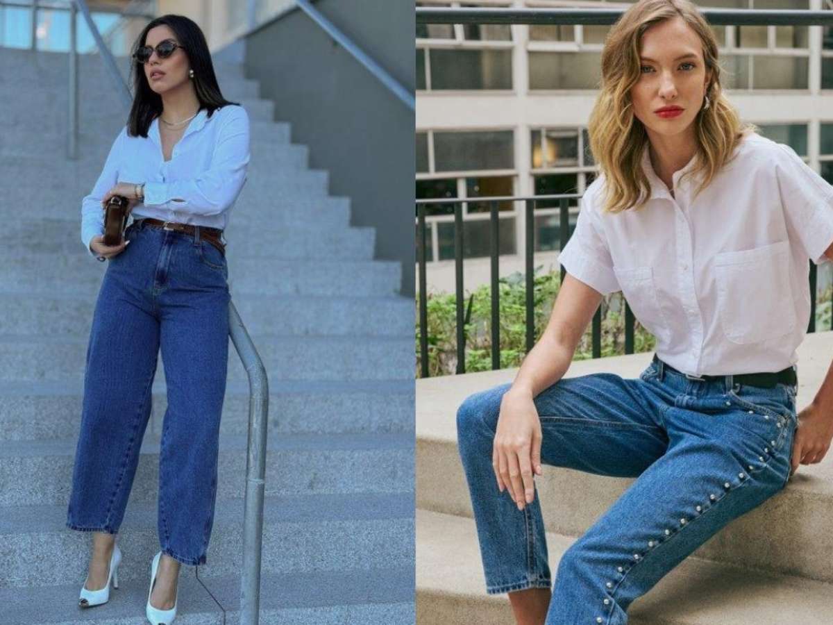 Uma escolha perfeita para quem busca um look despojado e, ao mesmo tempo, elegante. Para equilibrar a proposta retrô, combine com camisetas cropped ou uma camisa branca, finalizando com um scarpin para um toque sofisticado.