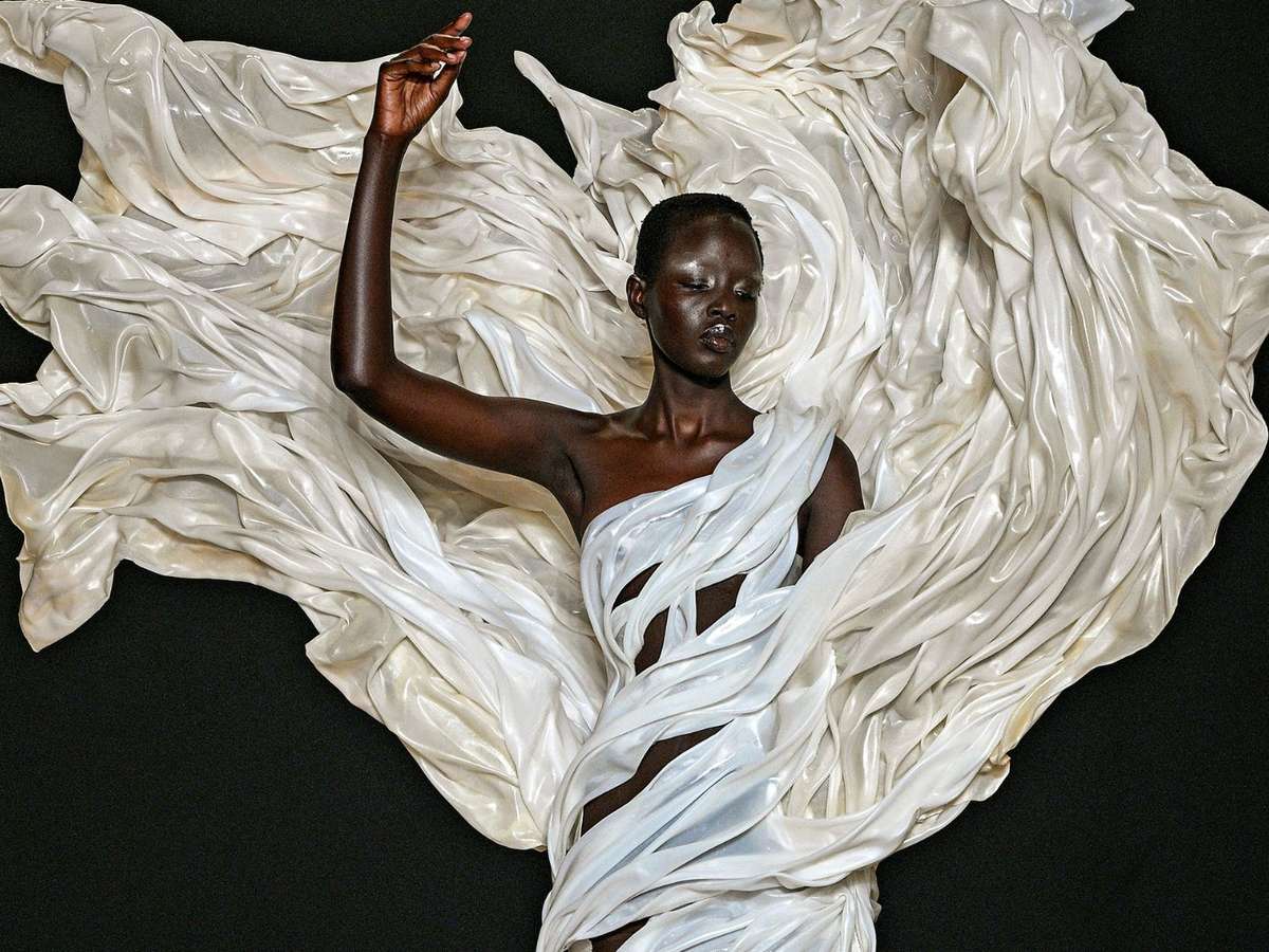 A coleção promoveu, como de costume, uma imersão sensorial com tecidos que flutuavam como águas-vivas, materiais inovadores, como proteínas fermentadas que imitavam ventosas de polvo e estruturas cinéticas que se moviam como esqueletos alienígenas.