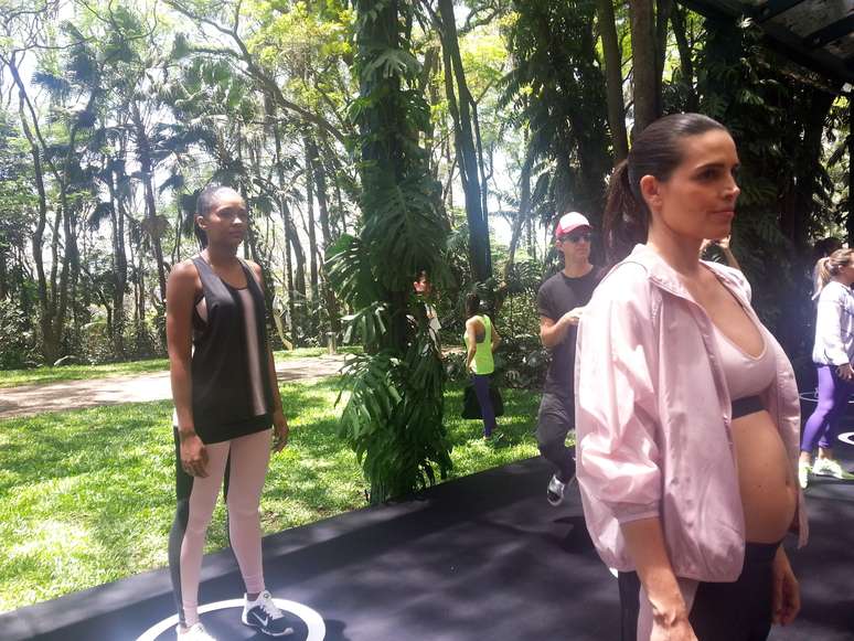 A top model Izabel Goulart e a triatleta Fernanda Keller mostraram treino para jornalistas e convidados no lançamento da coleção fitness da Nike em parceria com Pedro Lourenço