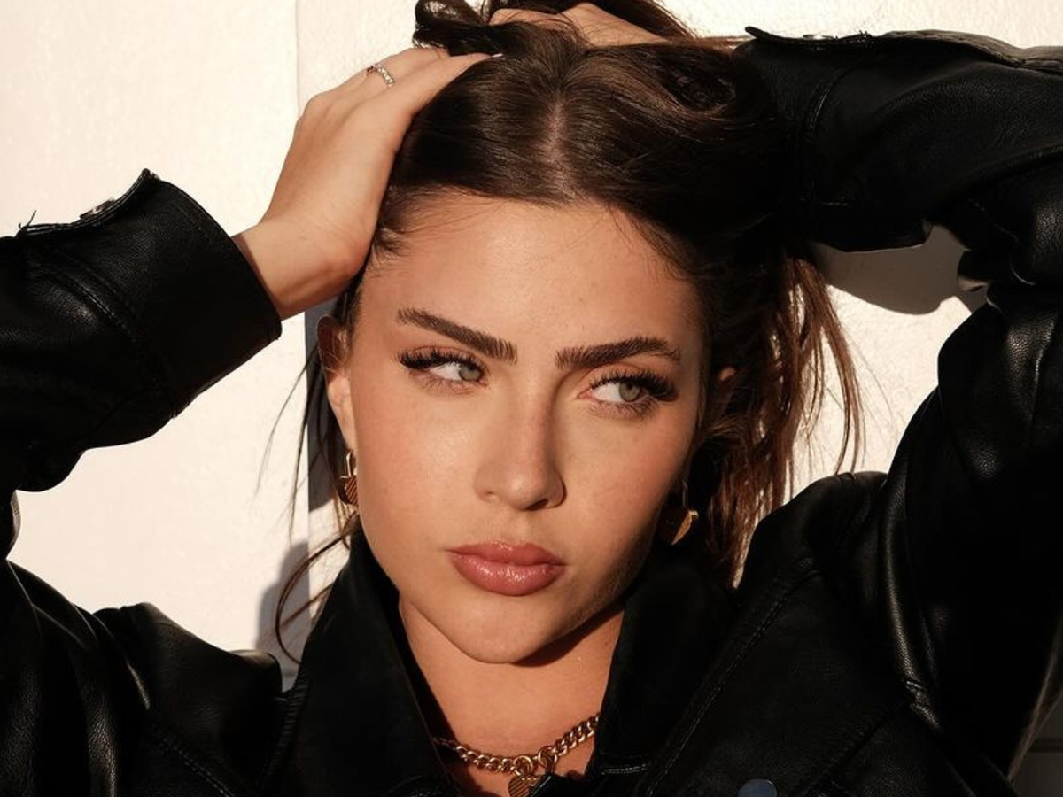 A atriz e influenciadora digital também colocou top e jaqueta preta de couro. Nos pés, calçado preto com solado grosso.