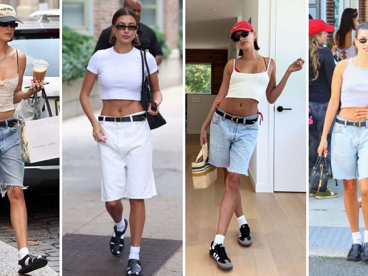 Jorts? Veja o comprimento fashionista favorito de Hailey Bieber!