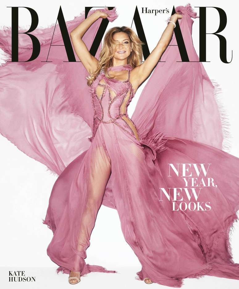 Kate Hudson foi escolhida para ser a estrela da capa e ensaio fotográfico da edição de novembro da revista Harper's Bazaar. Sorridente, a atriz posou com diferentes looks estampados e de cores vivas, entre eles um vestido longo cor de rosa que abusa dos recortes e transparência.