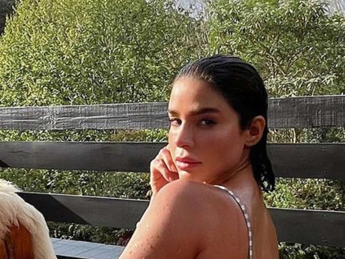 A ex-BBB e ex-Fazenda posou apenas de biquíni enquanto se refrescava. Com modelito cavado, ela arrasou nas poses e colocou o corpaço definido para jogo.