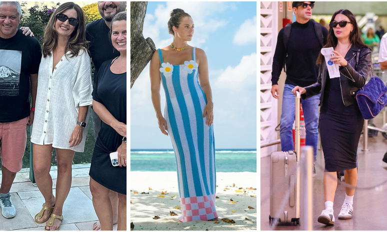 Paolla Oliveira curtiu dias de férias ao lado do namorado, Diogo Nogueira, no final de fevereiro e começo de março. Depois de Dubai, nos Emirados Árabes Unidos, foi para as Maldivas e arrancou elogios de seus seguidores no Instagram com looks estilosos para praia. Ela chamou atenção com look branco nada básico, composto por biquíni e conjunto de crochê de top cropped e saia de fenda. Também usou vestido longo de crochê com listras azuis e brancas, além de quadriculado na barra em rosa e branco. Para completar, aplicação de duas flores 3D no busto. Teve ainda conjunto de renda com transparência, incluindo top cropped e saia curta. A atriz também curtiu dia de sol com biquíni branco, que traz franjas de miçangas no top.
