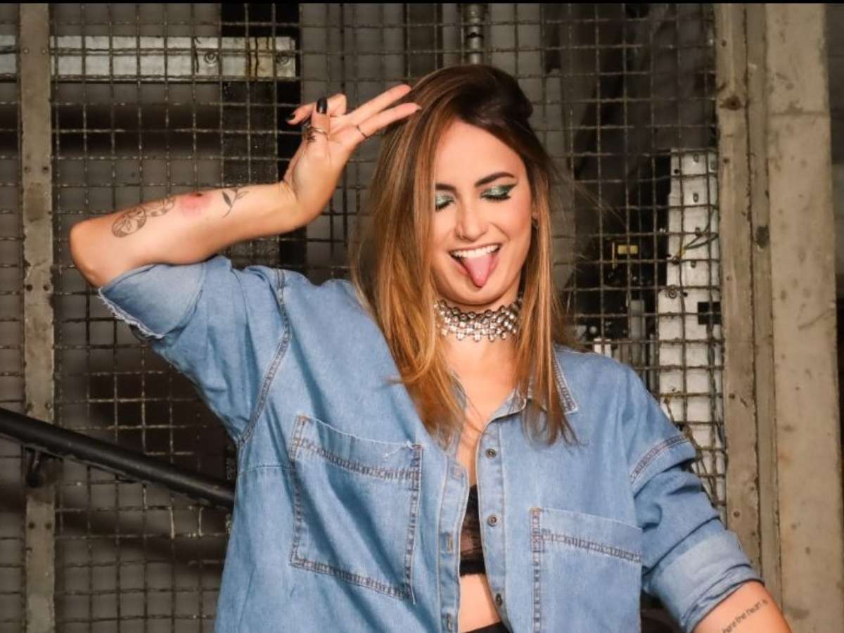 Mari Palma troca tênis por bota over the knee e camisa jeans