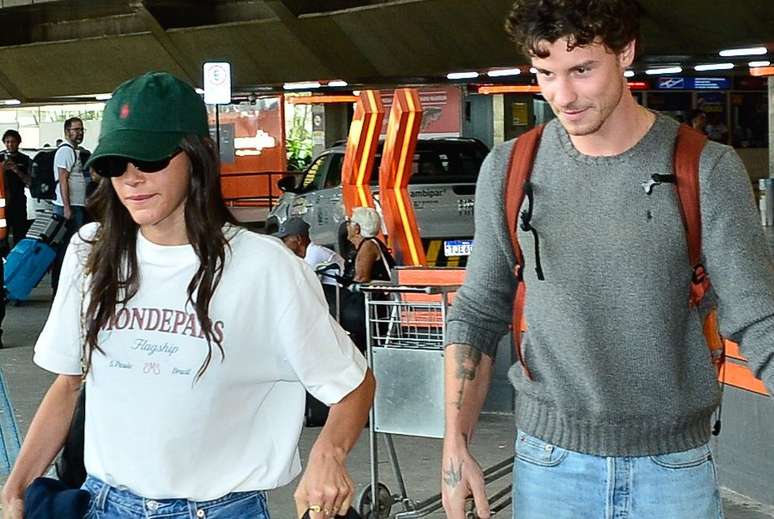 Para a ponte aérea, a atriz e o cantor canadense apostaram em peças comfy, perfeitas para um aerolook. No lugar do slip dress preto usado no jantar, de R$ 4.022, Bruna apostou em calça jeans reta e camiseta da Mondepars, marca de Sasha. A peça custa R$ 350 no site da grife.
