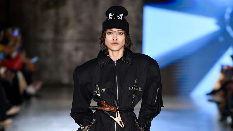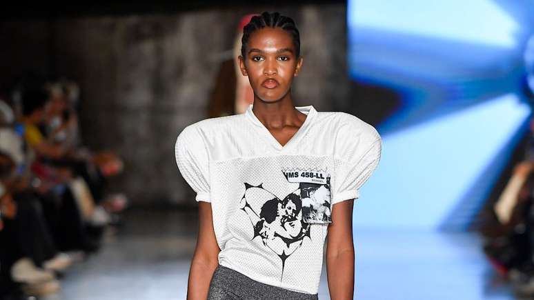 Desobediente, ousada, badass: Lucas Lyra faz de sua marca um instrumento, onde a trilha sonora dita o ritmo frenético da sociedade contemporânea. Maximalista, a coleção "Little Headbanger" cria personagens nostálgicos em transgressão ao ordinário, onde os trabalhadores se mesclam à Tumblr Era numa sombria interpretação de combate ao caos que lhes foi imposto. Com disformidades, serigrafia, acabamentos brutos e uma estética brutal, a UMS 458 - LL desobedece mais a cada desfile, e o hype é válido.