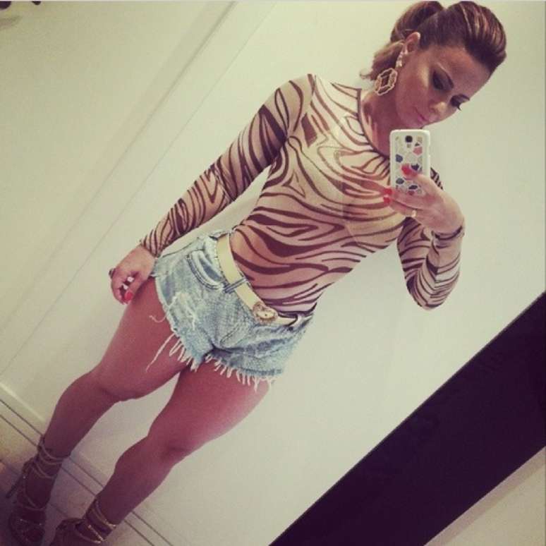 Animal print é uma das estampas preferidas de Vivi Araújo. O short também está na lista dos mais queridos. Neste look, ela combina as duas coisas, mas o body tão transparente não sinaliza bom senso na hora de eleger o que vestir.