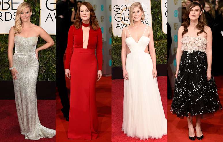 Rosemund Pike, Reese Witherspoon, Felicity Jones e Keira Knightley também não faltaram nos tapetes vermelhos das quatro premiações. Não levaram o prêmio, mas podiam ter conseguido um troféu, seja pelo melhor ou pelo pior look exibido.