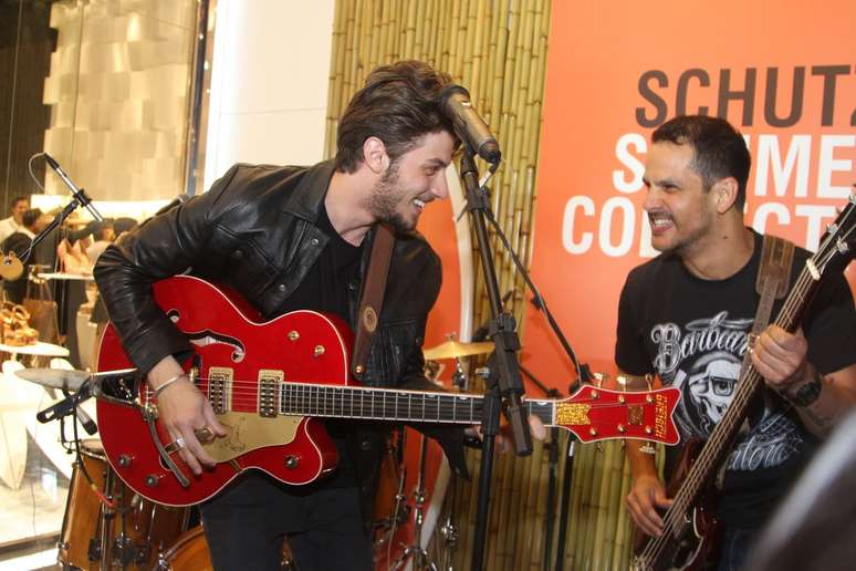 Depois do sucesso na novela Império, em que interpretou o personagem José Alfredo de Medeiros jovem, Chay Suede chama a atenção por onde passa. E não faz questão de ser discreto. Na noite da última quinta-feira (7) subiu ao palco para fazer um pocket show no lançamento da nova coleção de sapatos da Schutz, em São Paulo.