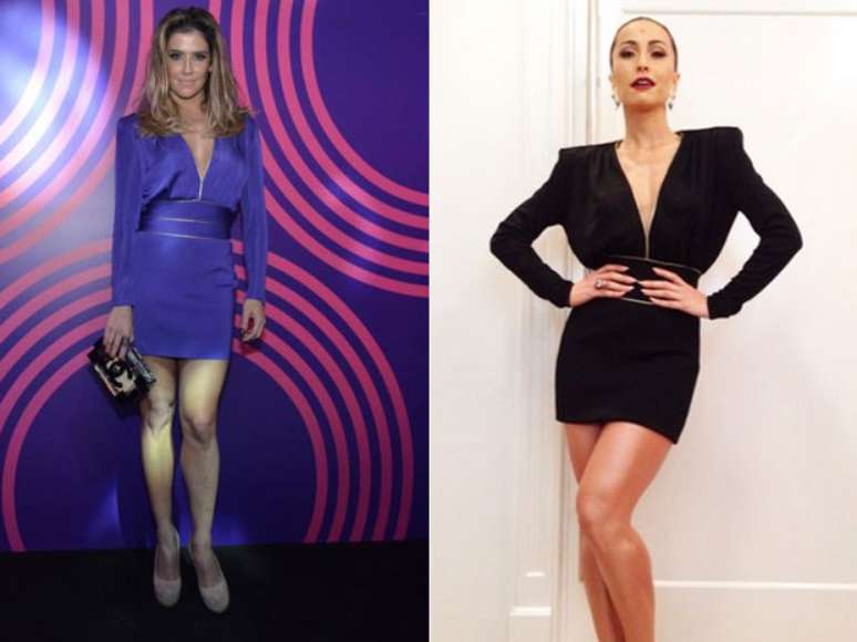 Na entrega do prêmio Melhores do Ano, Paolla Oliveira e Anitta apostaram no mesmo vestido. A diferença ficou por conta da cor - azul para a atriz e verde para a cantora - e alguns detalhes, como a manga e os acessórios utilizados. Paolla optou por um look mais colorido e sensual, e Anitta escolheu cinto mais discreto e deixou o colo encoberto (ela acaba de passar por uma operação nos seios)