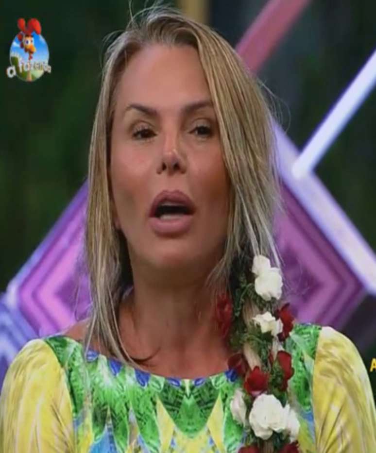 Cristina Mortágua está com uma blusa legalzinha, mas fora da Fazenda, tomara que esqueça este enfeite de flores que parecem roubadas de um altar. Vale só para efeitos especiais em fotos e olha lá...