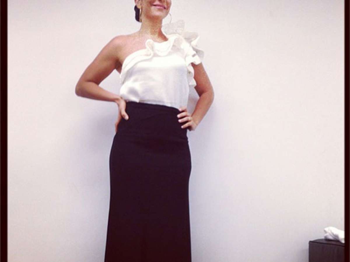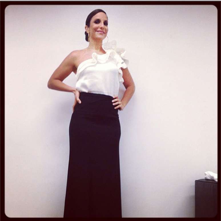 Antes de se apresentar em Porto Alegre na noite desta sexta-feira (27), Ivete Sangalo publicou uma foto do seu look no Instagram. Saia longa preta combinada com blusa de um ombro só com babado foram as escolhas da cantora. Para completar, cabelo preso e brincos de argola. "Alo Porto Alegre !! Vamos amar", escreveu ela