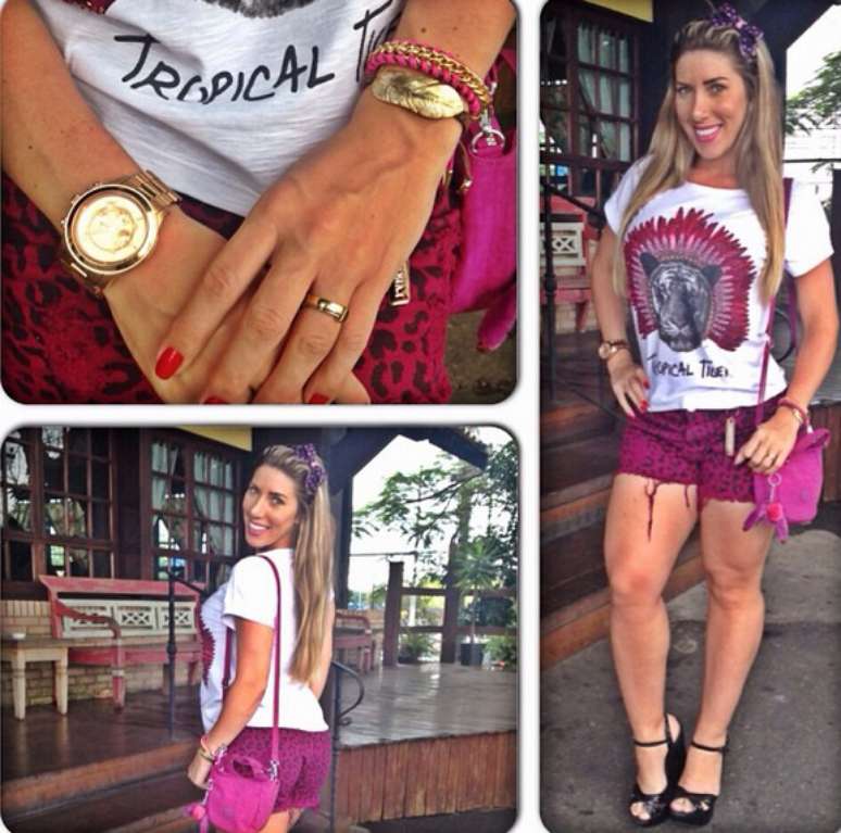 Nicole Bahls é conhecida por ter um jeito bem provocante na hora de se vestir. Neste sábado (28), ela publicou foto no Instagram usando legging com estampa de oncinha combinada com um top de manga longa, que deixava a barriga à mostra. A integrante do programa Pânico na Band apostou em cabelos soltos e um anel para completar o visual. "Hoje e dia de festa da Pacha", escreveu ela