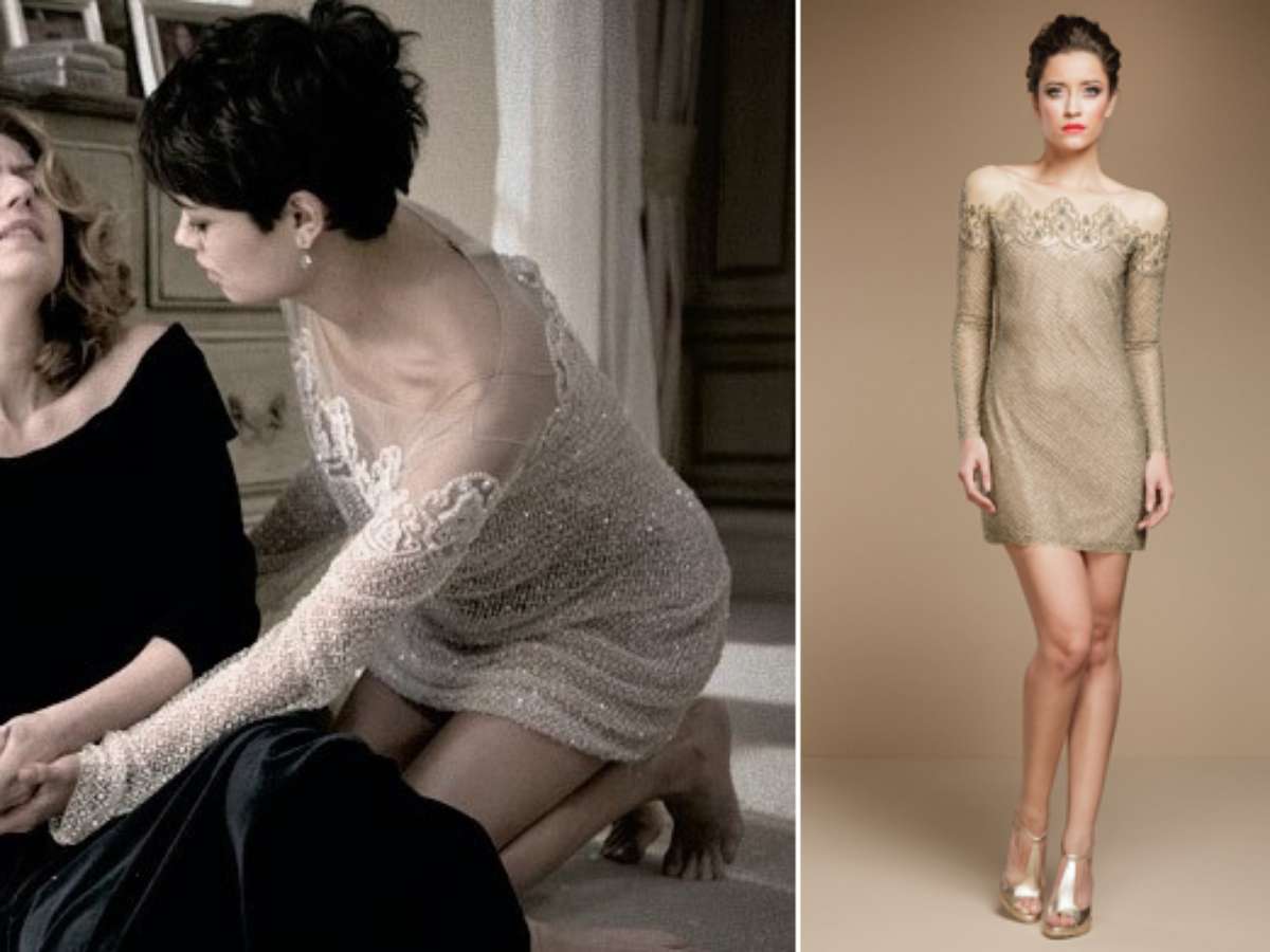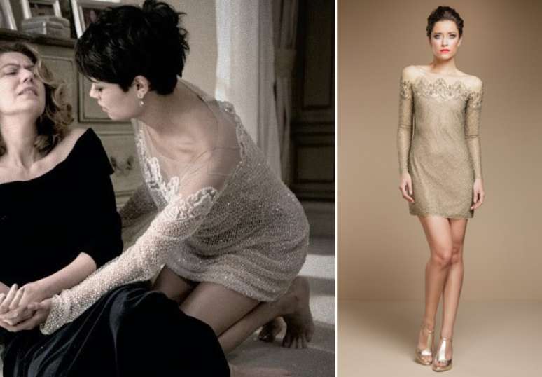 O quarto lugar é do vestido dourado da Duda (Sophie Charlotte), de O Rebu. A peça em renda, bordado em cristais e pedrarias, é da Martu. Preço: R$ 8,2 mil. Informações: (21) 3874-7537/ 2236-0871
